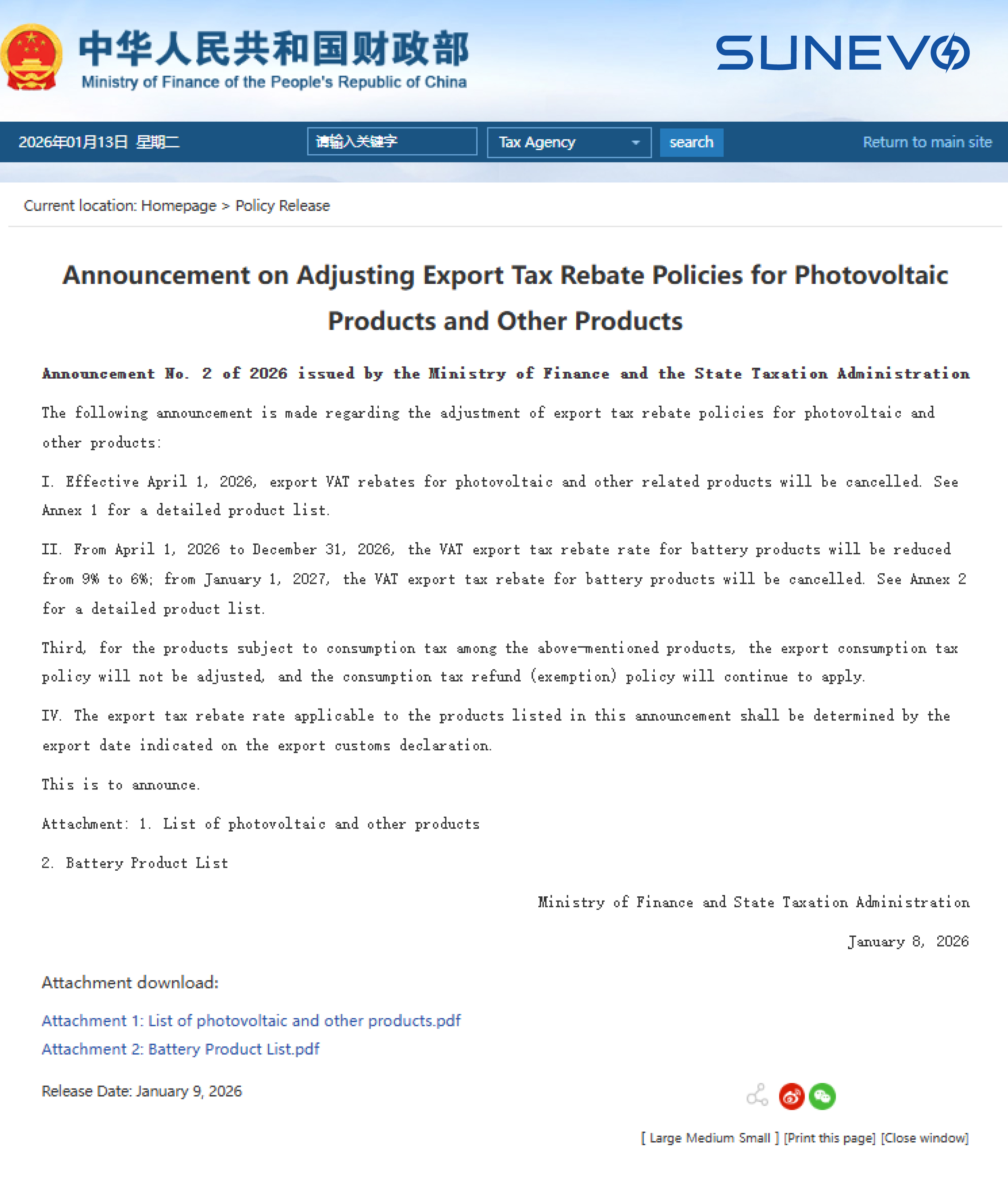 The Ministry of Finance and State Taxation Administration recently announced that starting April 1, 2026, VAT export tax rebates will be eliminated for products including photovoltaic and ceramic goods.