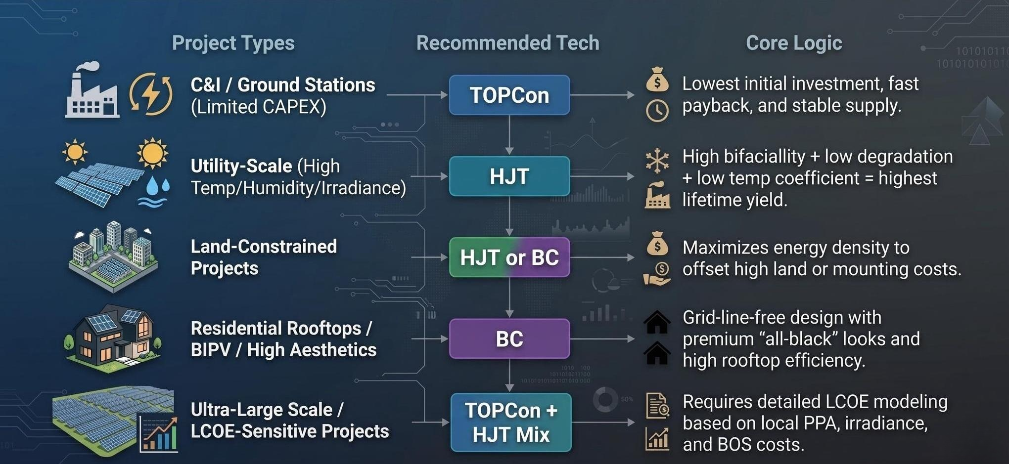 TOPCon vs. HJT vs. BC: 2026 Photovoltaic Module Selection Guide